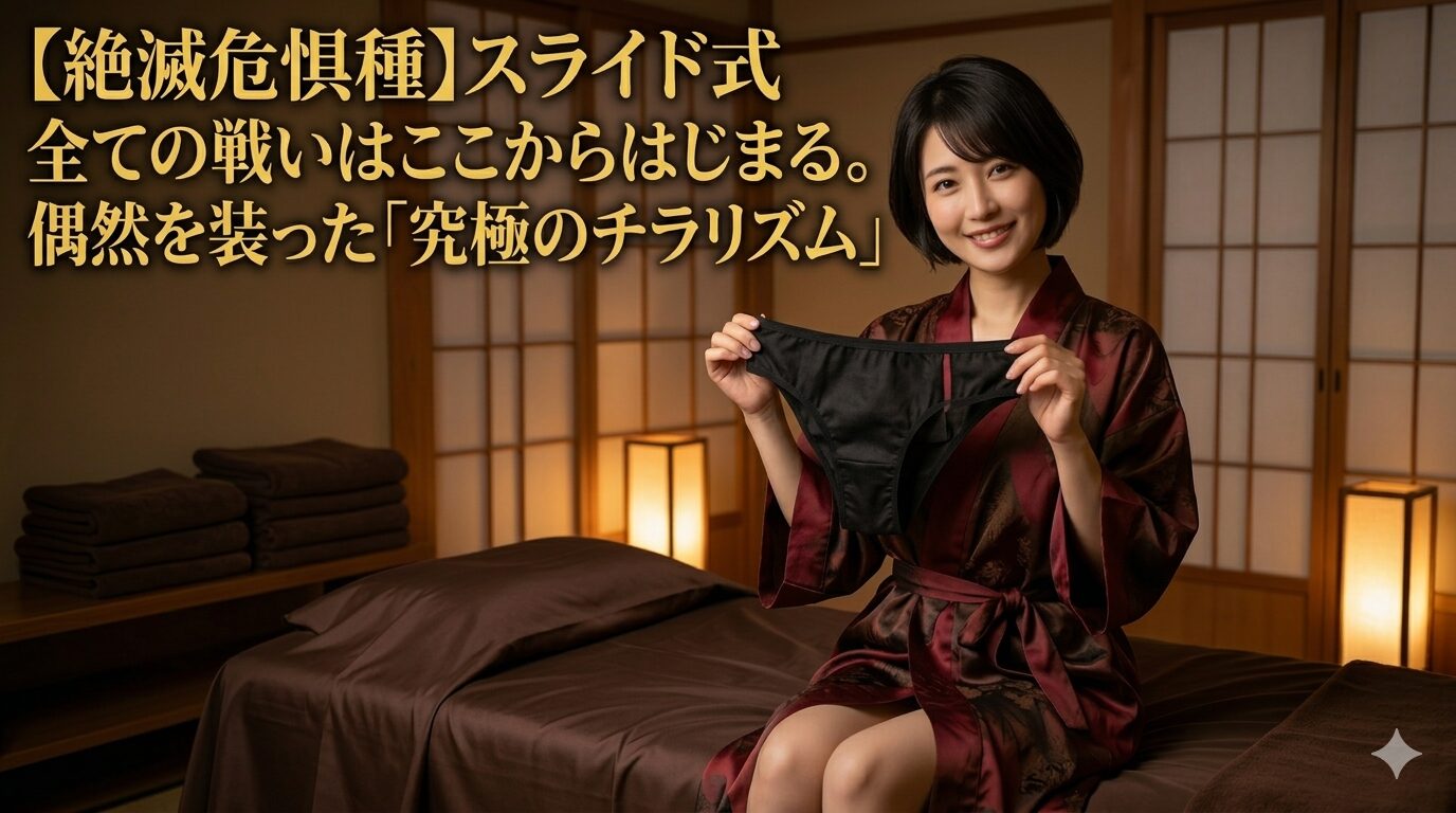 階段を上がる時のパンチラ、屈んだ瞬間のブラチラ……あの、見えないはずのものが見えてしまった時の、あの衝撃。スライド式パンツは、まさにその奇跡を意図的に(しかしあくまで偶然を装って)生み出してくれる装置なのです。」
