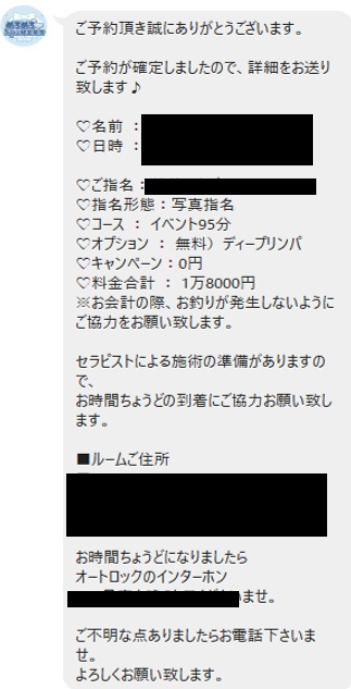 盛り上がってきたところでセラピさんから「初回の方は◯◯◯◯◯もらっているんです・・・。」とのご提案。もう満足してしまったので丁重にお断り。